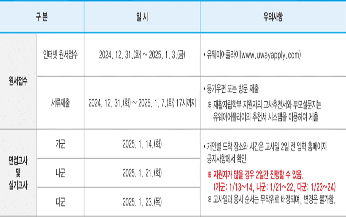 | 원서접수일 | 2024. 12. 31.(화) ~ 2025. 01. 03.(금) |