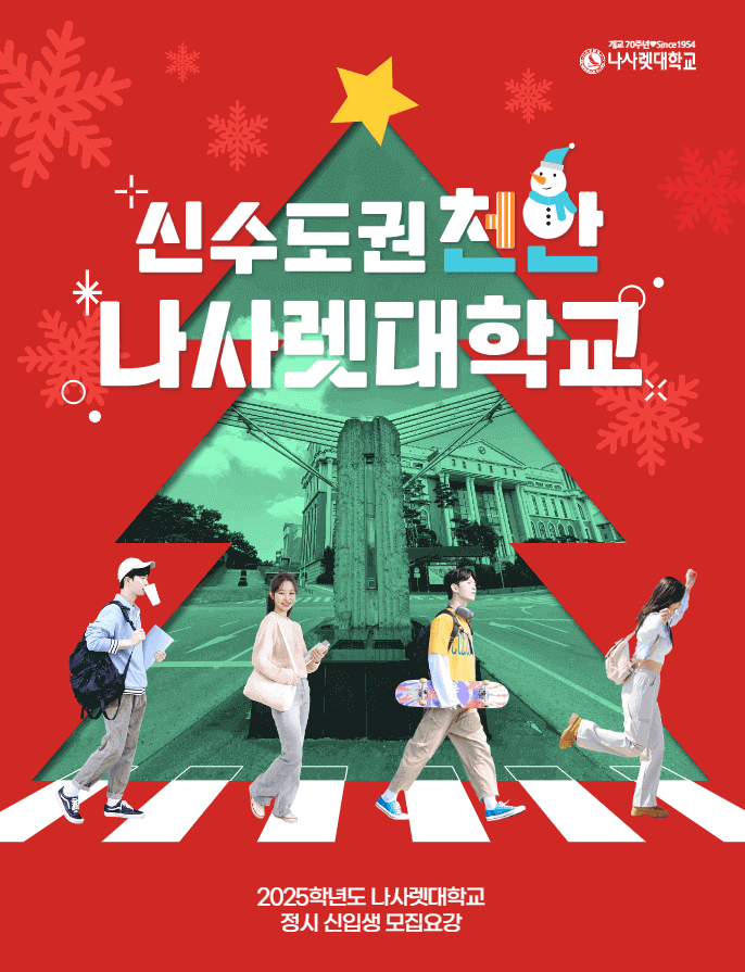나사렛대학교는 대한민국의 교육이념과 기독교정신에 의거하여 국가와 인류사회를 섬기는 지도자를 양성하고, 대한기독교나사렛성결회 교역자 양성을 위하여 국민생활의 기초교육 및 고등교육과 종교교육을 실시하며, 국민의 복지증진을 위한 사업을 시행하는 것을 목적으로 하고 있습니다. 이를 바탕으로 “진리탐구, 경건생활, 사랑실천”을 교육목표로 삼고 있습니다. ‘ad fontes’ 즉 교육의 근원인 진리를 탐구하는 대학교입니다. 학생들에게 단순히 지식을 전달하는 것이 아니라 변화하는 시대에 지식을 창의적으로 활용할 수 있는 교육을 추구하고 있는 나사렛대의 2025학년도 정시모집 합격자 발표 및 충원합격자 1차~6차 발표 조회, 정시모집 최종경쟁률, 정시모집 원서접수일 및 서류제출, 정시모집요강, 정시모집 주요 변경 사항, 모집군, 2025학년도 수시모집 경쟁률, 2024학년도 정시모집 입시결과, 자유전공선택계열, 입학상담 서비스, 학과소개, 정시Q&A 등에 대해서 알아보도록 하겠습니다.