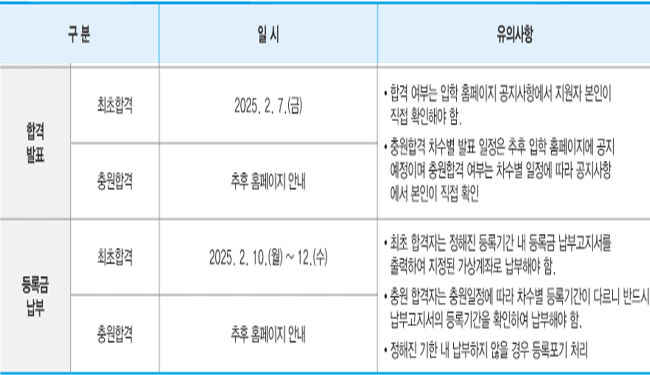 1. 2025학년도 정시모집 충원 합격자 발표 및 등록금 납부 일정