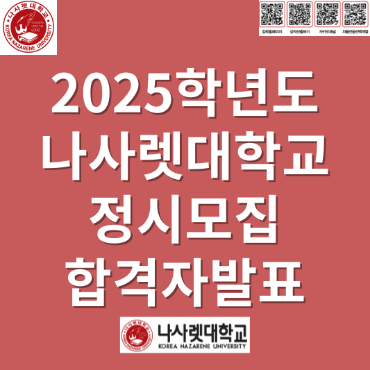 2025학년도 나사렛대 정시모집 합격자 발표일 및 충원합격자 발표일에 대해사 안내해 드리도록 하겠습니다.