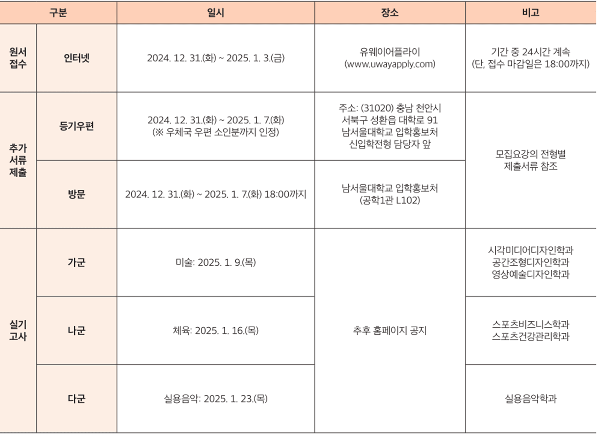| 원서접수일 | 2024. 12. 31.(화) ~ 2025. 01. 03.(금) |