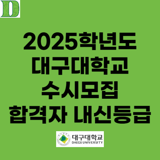 대구대학교는 2026학년도에도 학생부종합전형(서류형)을 통해 다양한 인재를 모집할 예정입니다. 본 전형은 면접 없이 서류 100%로 평가하며, 교과 성적뿐 아니라 비교과 활동 전반을 종합적으로 반영합니다. 특히 인문사회·자연과학·예체능·교육계열 등 다양한 모집단위에서 폭넓게 학생을 선발하므로, 자신의 강점을 중심으로 지원 전략을 수립하는 것이 중요합니다. 아래에 있는 2025학년도 수시모집 합격자 내신등급을 확인하시고 지원 시 적절하게 활용하시기 바랍니다.