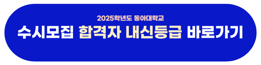누군가는 말합니다. “좋은 대학은 성적순이다.” 하지만 세상은 그렇게 단순하지 않습니다. 누구보다 열정적으로 학교생활을 해왔고, 자신만의 방식으로 성장을 이뤄온 여러분의 이야기를 알아보는 전형, 바로 동아대학교 학생부종합 잠재능력우수자전형입니다. 2026학년도 입시를 준비하는 수험생이라면 지금부터 주목해 주세요. 2025학년도 합격자들의 내신 성적, 경쟁률, 학과별 분석을 기반으로 당신만의 전략을 세우는 데 도움이 될 수 있는 핵심 정보와 합격을 위한 방향을 이 글에 담았습니다. 내신 등급에만 의존하지 않고, 학교생활기록부 속에 담긴 당신의 잠재력을 보여주세요. 동아대는 당신의 진정성 있는 기록과 성장 이야기를 기다리고 있습니다. 아래에 2025학년도 동아대 수시모집 합격자 내신등급을 확인하셔서 지원 시 도움이 되시기 바라겠습니다.
