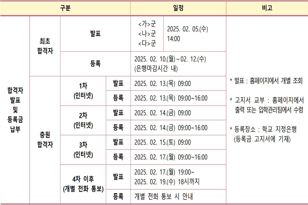 - 4차(개별 전화 통보) : 2025. 2. 17.(월) 19:00 ~ 2025. 02. 19.(수) 18시까지