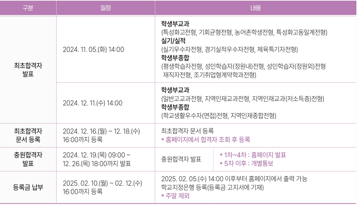 ◈ 정시모집 합격자 발표일 및 충원합격자 발표일 안내