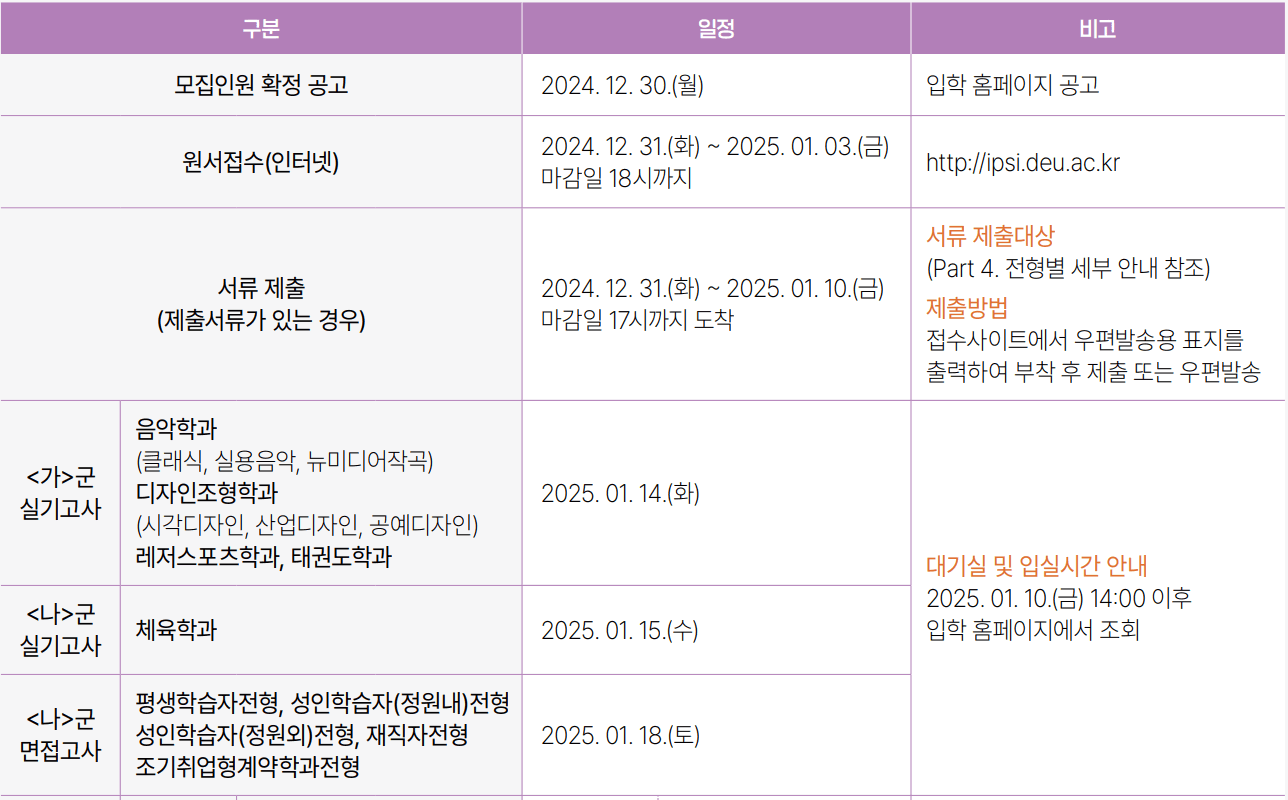 | 입학 홈페이지 | http://ipsi.deu.ac.kr |
