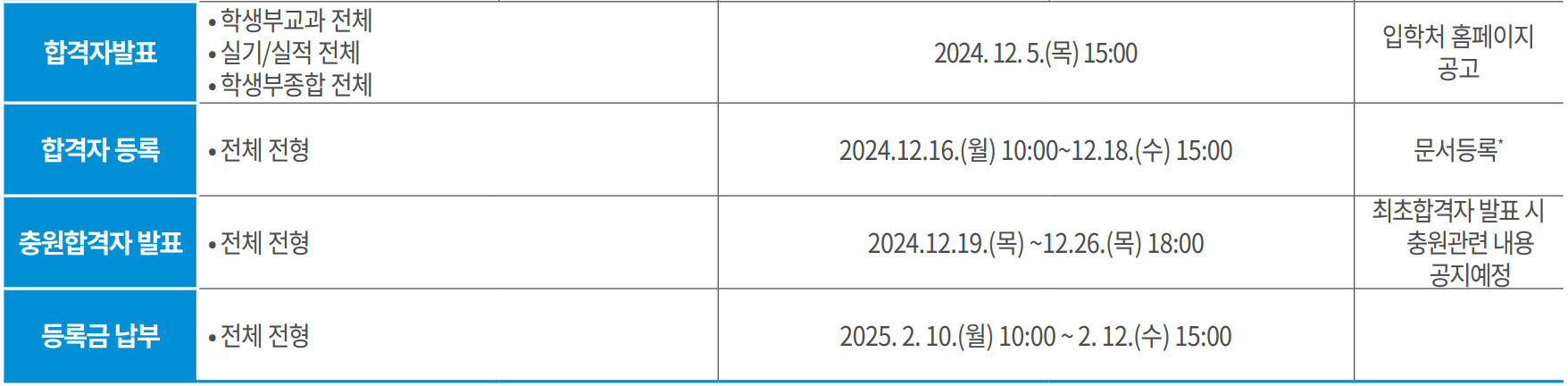 | 구분 | 전형명 | 일정 | 비고 |