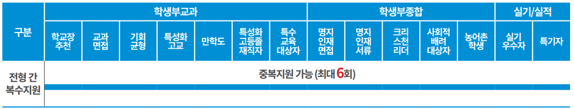 ※ 명지대학교 수시모집의 모든 전형에 중복지원이 가능합니다.