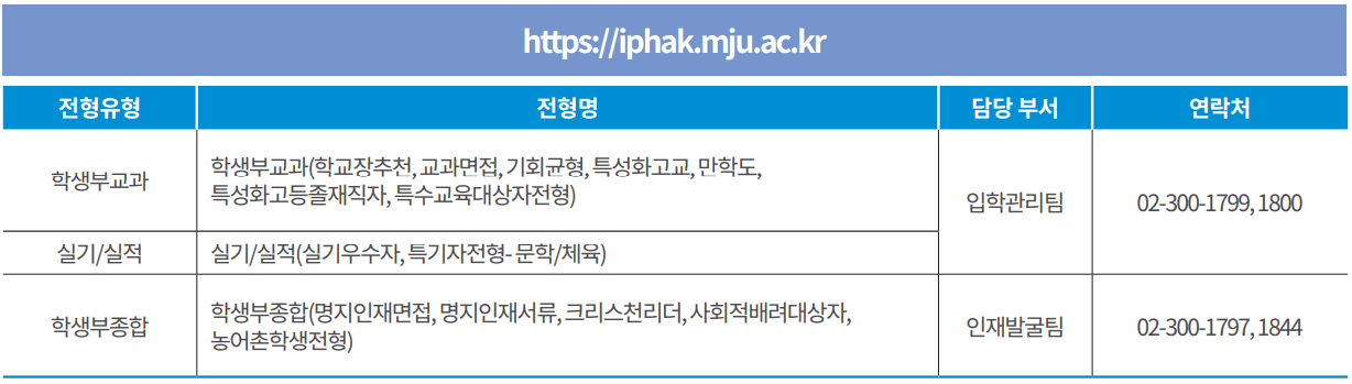 | 입학처 홈페이지 | https://iphak.mju.ac.kr |