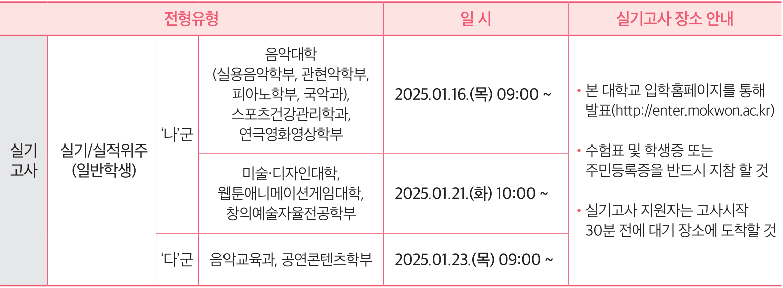 - 2025. 02. 04.(화) 16:00 ~ : 실기/실적위주(일반학생) '나'군, '다'군