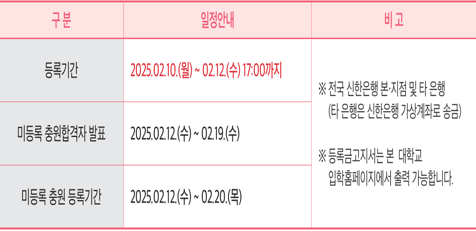 ★ 충원합격자 발표 : 2025. 02. 12.(수) ~ 02. 19.(수)