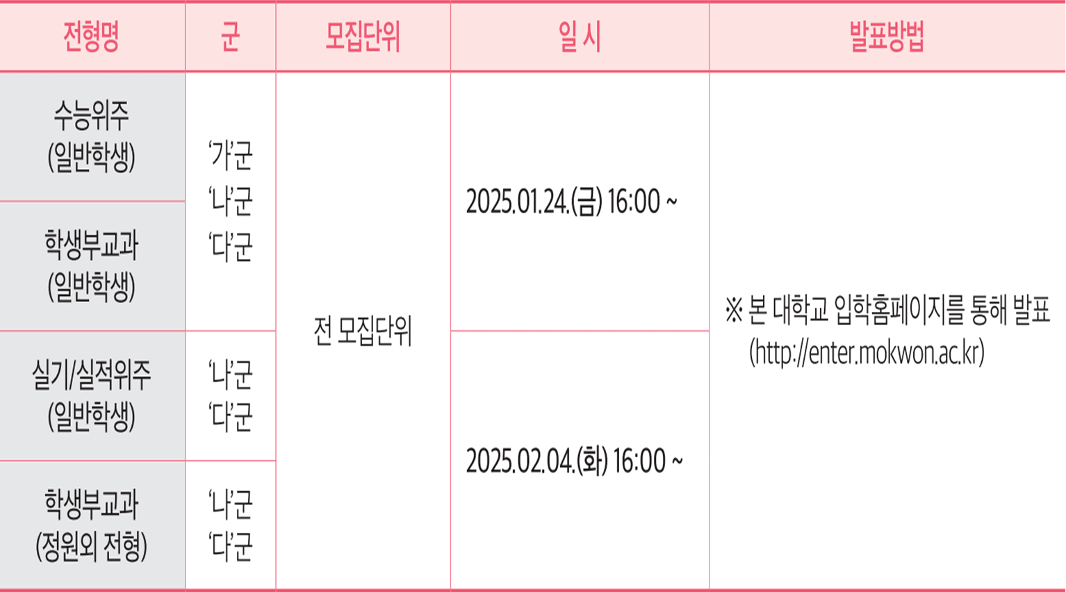 - 2025. 01. 24.(금) 16:00 ~ : 수능위주(일반학생) '가'군, '나'군, '다'군