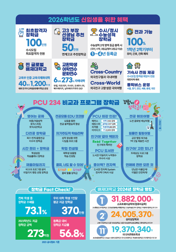 배재대학교는 실용중심 교육과 학생친화적인 전형으로 잘 알려진 대학입니다. 특히 수시모집에서는 다양한 학과와 특화된 교육 커리큘럼을 통해 전국 수험생들에게 폭넓은 기회를 제공합니다. 2025학년도 수시모집 결과를 바탕으로 2026학년도 입시 준비생들을 위한 지원 전략을 소개하고자 합니다. 경쟁률과 합격자 내신 평균, 지원 팁을 통해 본인의 위치를 점검하고 현명하게 준비해보세요. 아울러 2025학년도 수시모집 합격자 내신등급도 확인하셔서 지원 시 참고하시기 바랍니다.