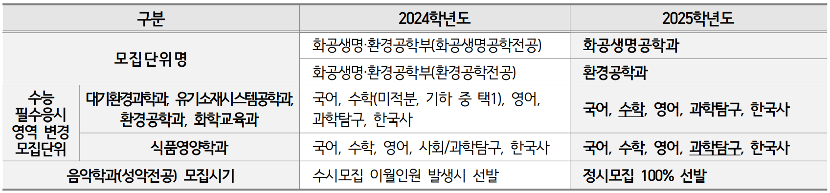 | 구분 | 2024학년도 | 2025학년도 | 비고 |