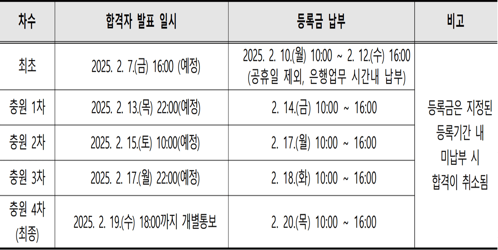 - 4차 : 2025. 2. 19.(수) 18:00 까지 개별통보