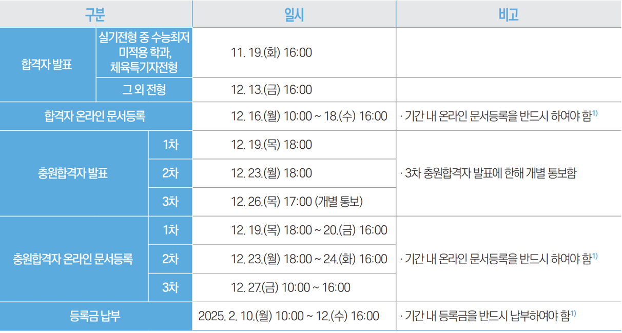 ◈ 정시모집 합격자 발표일 및 충원합격자 발표일 안내