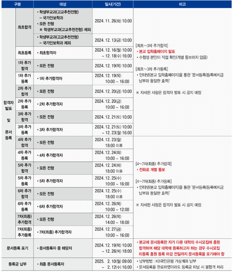● 모든 전형 [※ 학생부교과(고교추천전형) 제외] : 2024.12.13.(금) 10:00