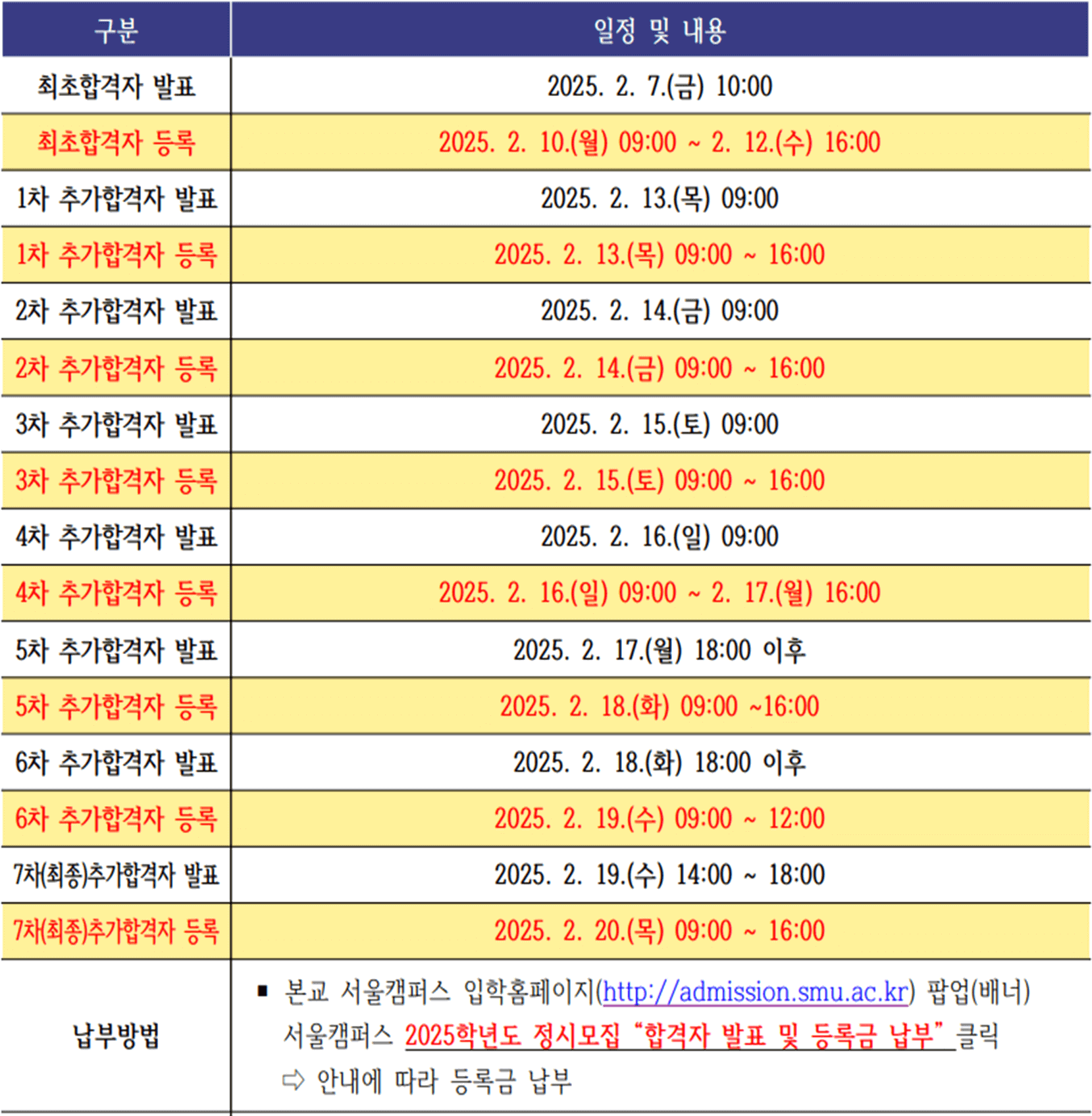 | 입학홈페이지 | http://admission.smu.ac.kr |