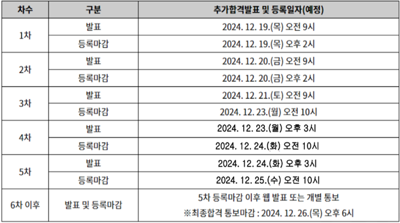 ◈ 정시모집 합격자 발표일 및 충원합격자 발표일 안내