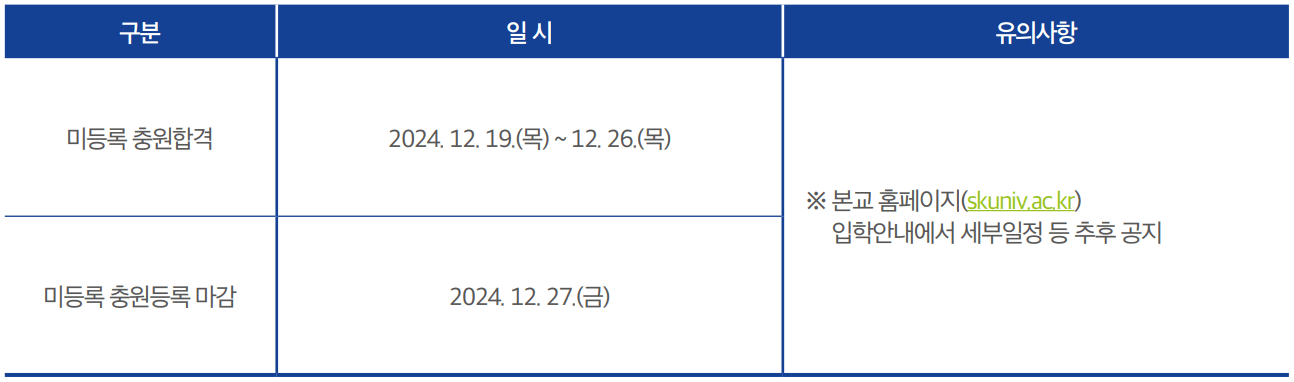 2. 충원(추가) 합격자 발표일 : 2024.12.19.(목) ~ 12.26.(목)