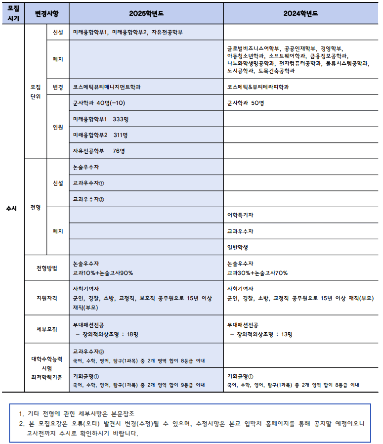 | 구분 | 전형 | 일정 | 유의사항 |