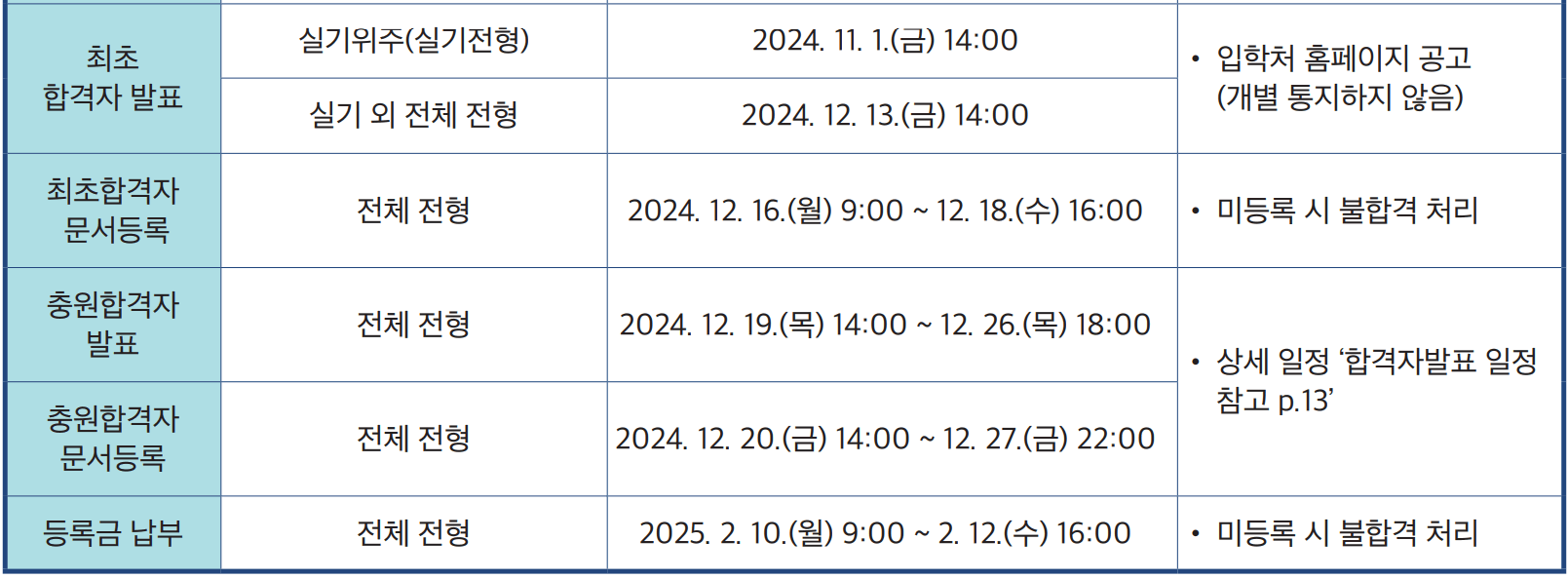 - 실기 외 전체 전형 : 2024.12.13.(금) 14:00