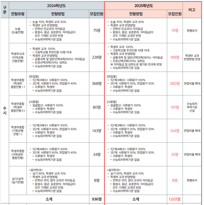 ● 2024학년도 대비 2025학년도 입학전형 주요 변경사항