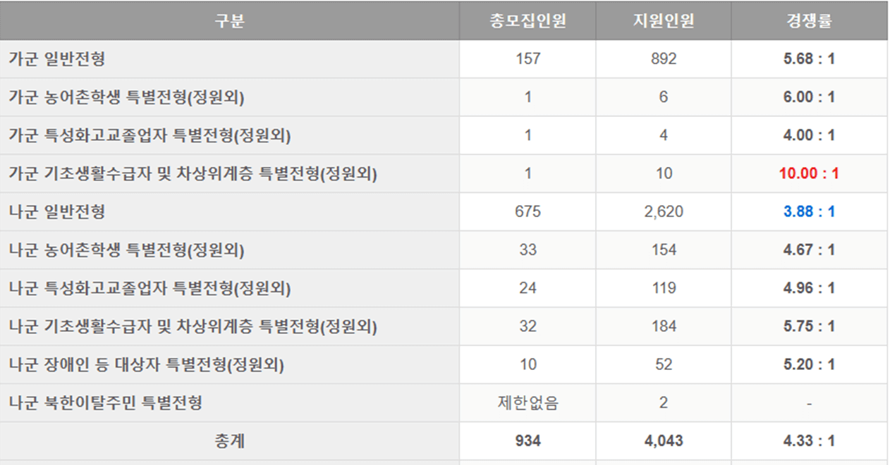 ※ 모집군 : 가군, 나군, 다군