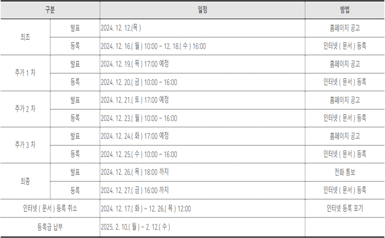 ◈ 정시모집 합격자 발표일 및 충원합격자 발표일 안내