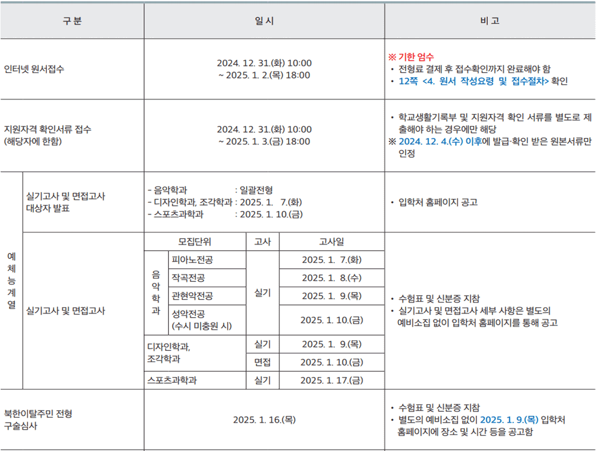 * 논술, 면접, 실기고사 당일 신분증과 함께 지참 |