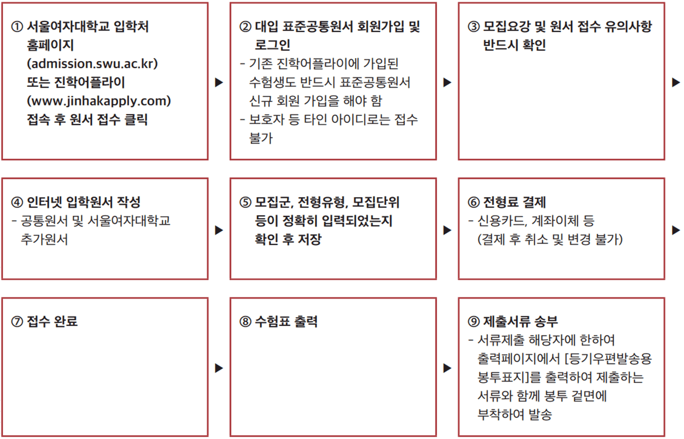 - 서울여대 입학처 홈페이지( http://admission.swu.ac.kr )에서 확인