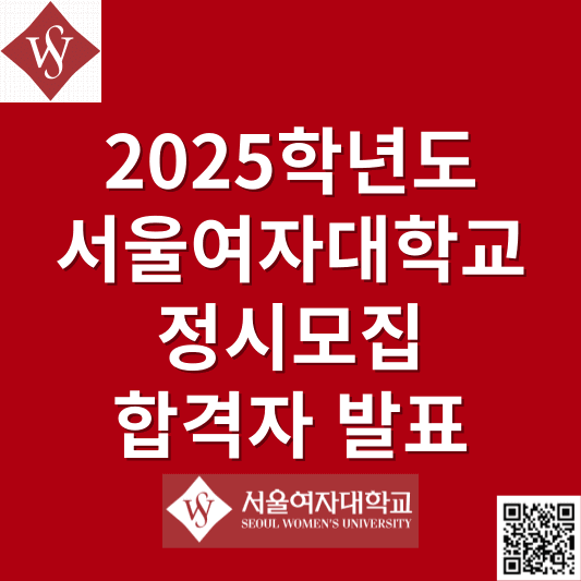 1961년 대한예수교장로회 총회에 의해 설립된 서울여자대학교는 우리나라의 유일한 공동체 인성교육의 장으로서 ‘바롬인성교육’을 토대로 한 우리만의 특성화된 교육을 펼친 결과, 반세기를 넘으며 명실공히 명문 여자대학교로 괄목할 만한 성장을 이루었습니다. 최첨단 전문지식을 습득할 수 있는 ‘엘리트 교육’은 물론, 공동체 가치를 실천할 수 있는 ‘바롬인성교육’을 더욱 강화하여 자랑스런 대학을 만들어 갈 서울여대의 2025학년도 정시모집 합격자 조회 및 충원합격자 1차~6차(최종) 발표 조회, 정시모집 최종경쟁률, 정시모집 원서접수일 및 서류제출, 정시모집요강, 정시모집 주요 변경사항, 모집군, 2024학년도 정시모집 경쟁률 및 입시결과, 입학상담 프로그램, 학과소개, Q&A 등에 대해서 알아보도록 하겠습니다.