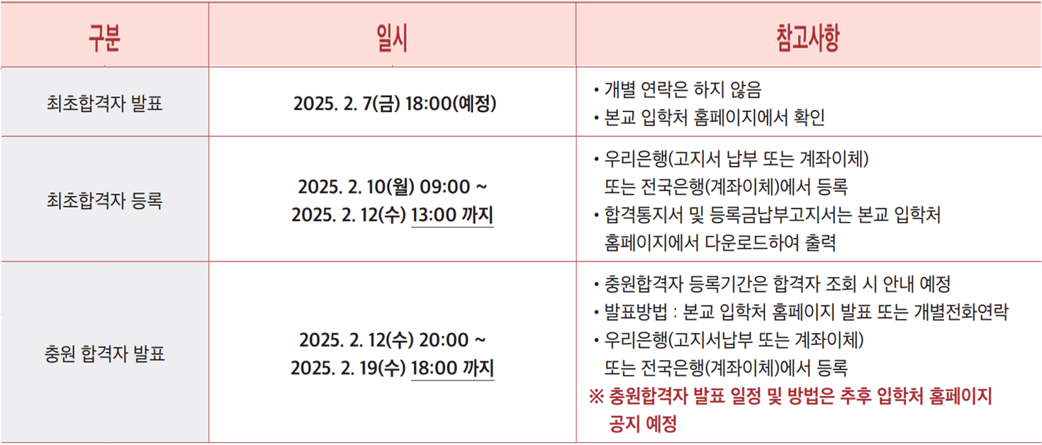 - 4차 충원 : 2025. 2. 17.(월) 14시 전후 [전화 발표]