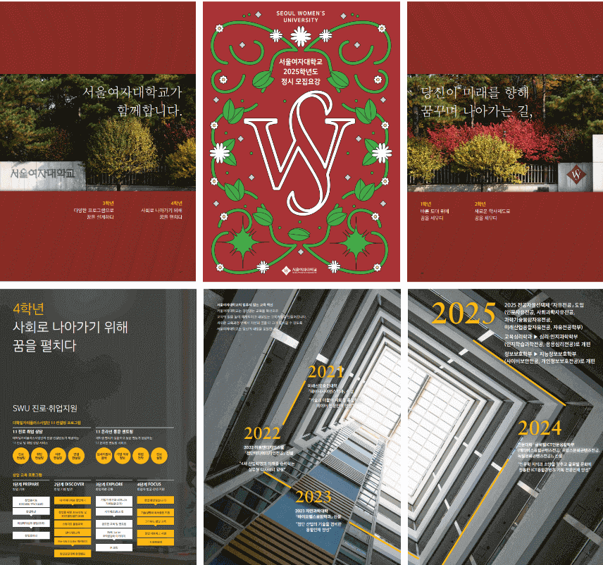 2025학년도 서울여대 정시모집 지원을 희망하는 수험생분들을 위해 학과에 대한 소개를 안내해 드리겠습니다. 교육목표, 전공소개, 교수진, 교과과정, 교양·전공 연계 로드맵, 진로로드맵, 취업정보, 학사정보, 커뮤니티 등 각 학과의 특·장점들의 내용이 수록되어 있습니다. 천천히 읽어보시고 지원 시 도움이 되시기 바랍니다.