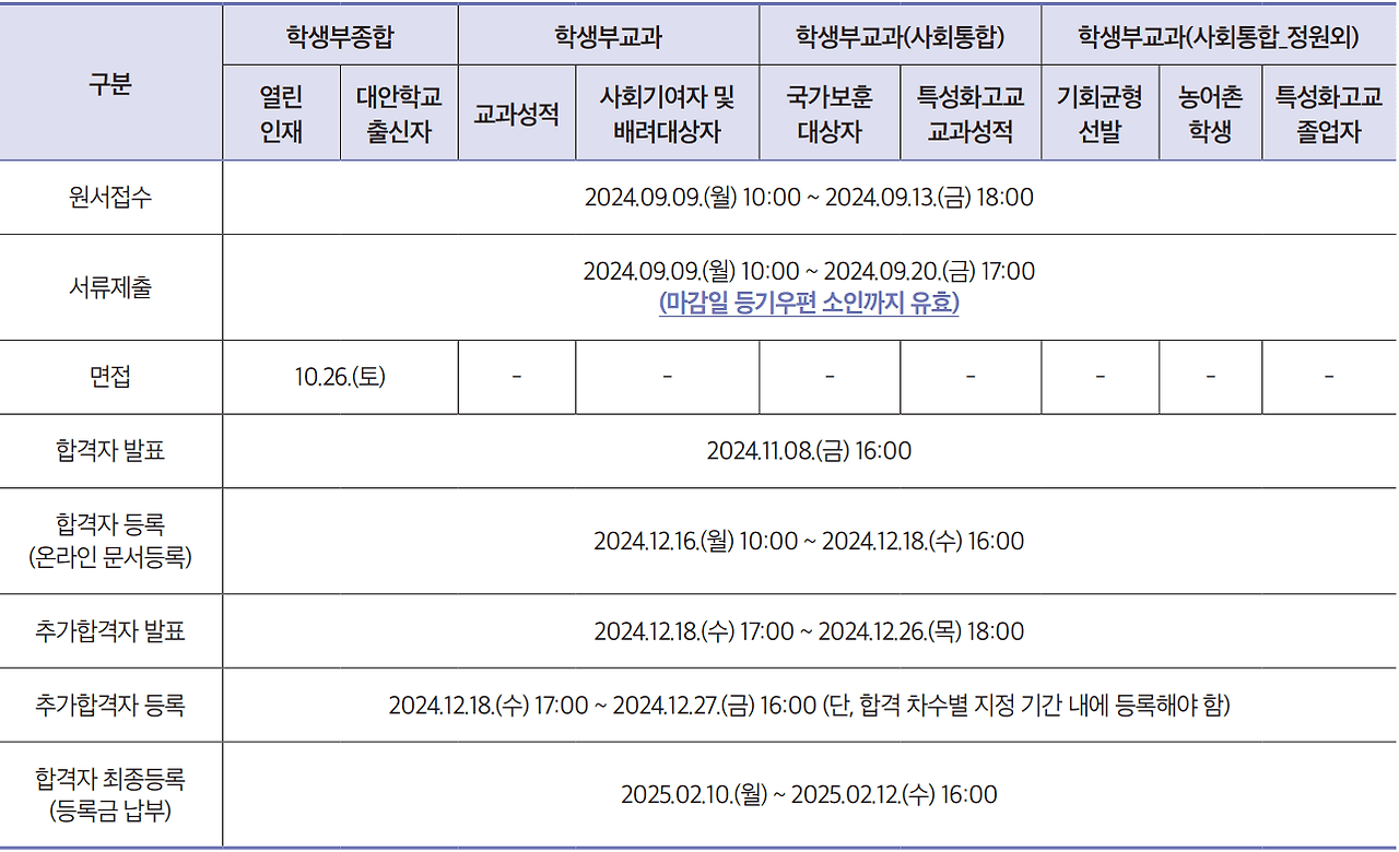 | 최종 충원 등록 | ~ '25. 02. 20.(목) 16:00 |