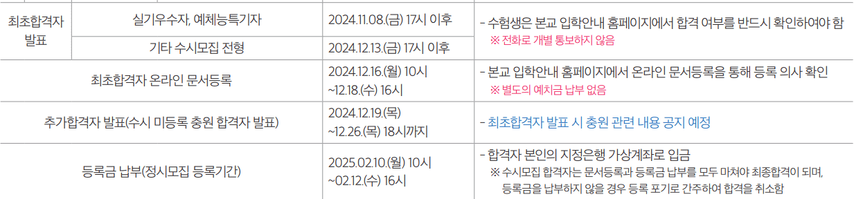 ※ 입학원서 접수 마감 시한[2024.09.13(금) 17시] 정각에 원서접수 사이트 접속이 차단되니 사전에 미리 접속하여 원서 입력 및 전형료 결제를 완료해야 함