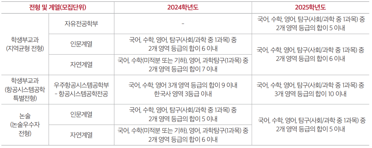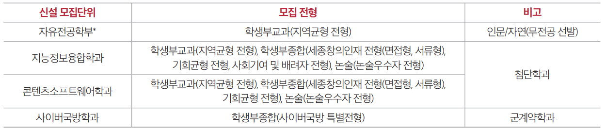 *자유전공학부는 입학 후 대학 내 모든 전공 선택이 가능함(단, 예체능대학, 창의소프트학부, 첨단학과, 정원 외 계약학과 및 성인학습자 전담 학과는 제외)