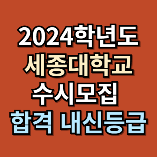 2024학년도 새 학기가 시작되고 벌써 5월이 되었습니다. 곧 있으면 전국 대학별로 2025학년도 수시모집요강이 발표되고 좀 더 마음이 급해지는 시기가 다가오는 것 같습니다. 이미 수시 지원은 물 건너갔다고 생각되시는 수험생분들이 더러 계시겠지만 끝까지 본인에게 맞는 수시모집 전형을 잘 찾아보시기를 추천해 드립니다. 오늘은 2024학년도 세종대학교 수시모집 합격 내신등급에 대한 정보를 가져왔습니다. 참고하셔서 좋은 결과를 얻는데 도움이 되시기 바랍니다.