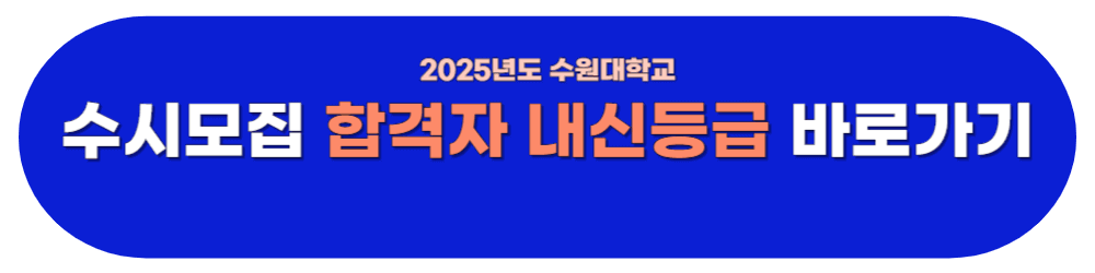 수원대학교 입시는 수험생의 성향과 강점에 따라 다양한 전형으로 도전이 가능합니다. 특히 교과논술전형과 면접위주교과전형은 내신 성적뿐 아니라 논술능력 또는 면접역량을 활용해 경쟁력을 높일 수 있는 방식입니다. 2025학년도 전형결과를 분석하고, 2026학년도 합격 전략을 세우는 데 도움이 되는 정보를 제공해드리갰습니다. 아울러, 합격자 내신등급도 아래 이미지를 클릭해보시면 자세하게 살펴보실 수 있습니다.