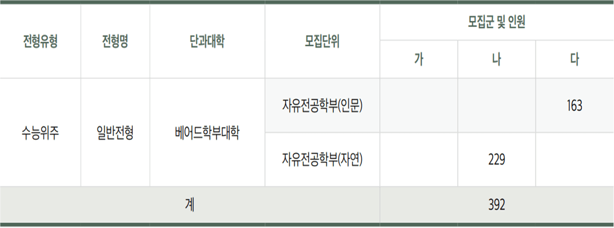 ● 선발 전형: 수능위주 일반전형 나·다군