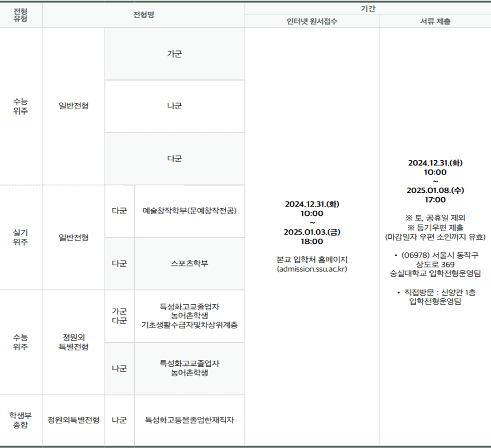 | 입학처 | (06978) 서울시 동작구 상도로 369 숭실대학교 입학전형운영팀 |