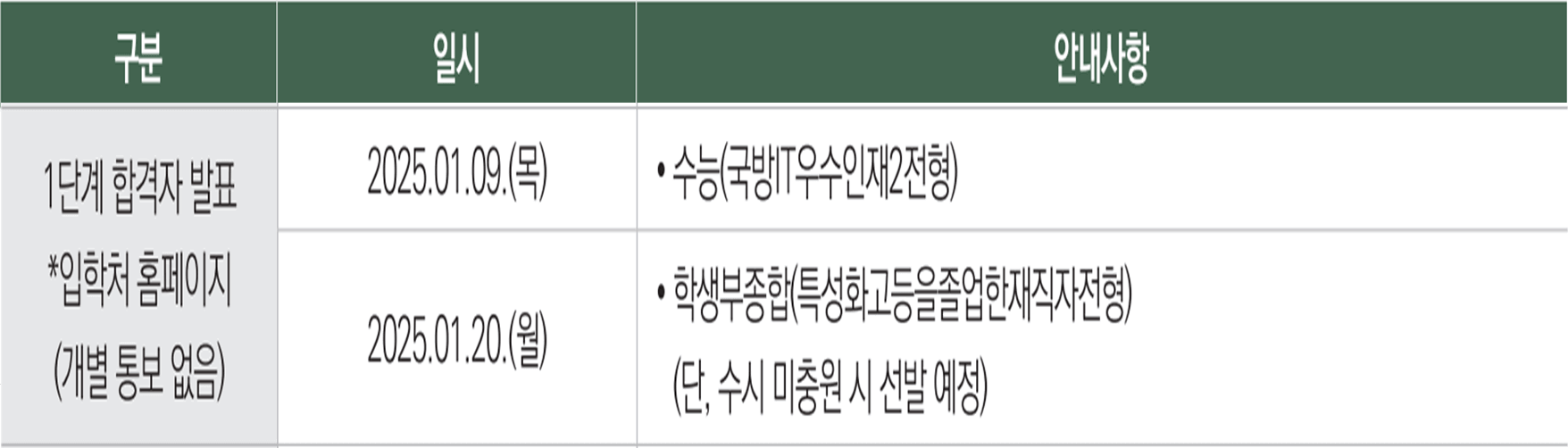 ● 수능(국방IT우수인재2전형) : 2025. 01. 09.(목)