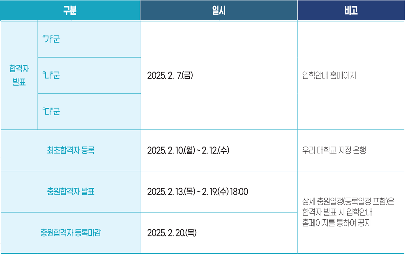 ★ 충원합격자 발표 : 2025. 2. 13.(목) ~ 2. 19.(수) 18:00