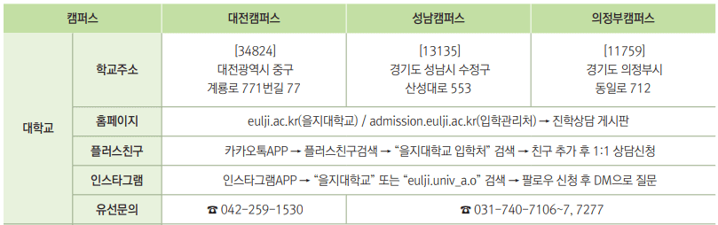 | 입학관리처 홈페이지 | http://admission.eulji.ac.kr |