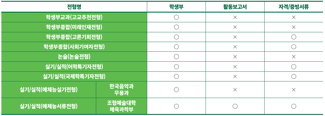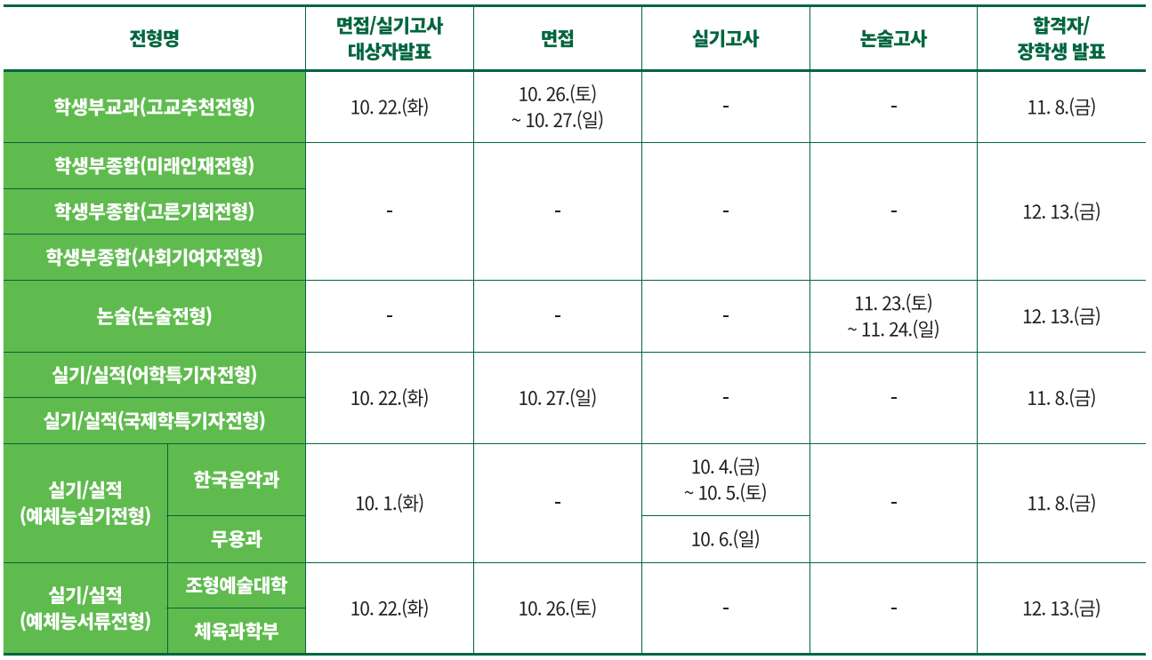 2024.9.10.(화) 10:00 - 9.13.(금) 17:00 | 실기/실적(예체능서류전형) |