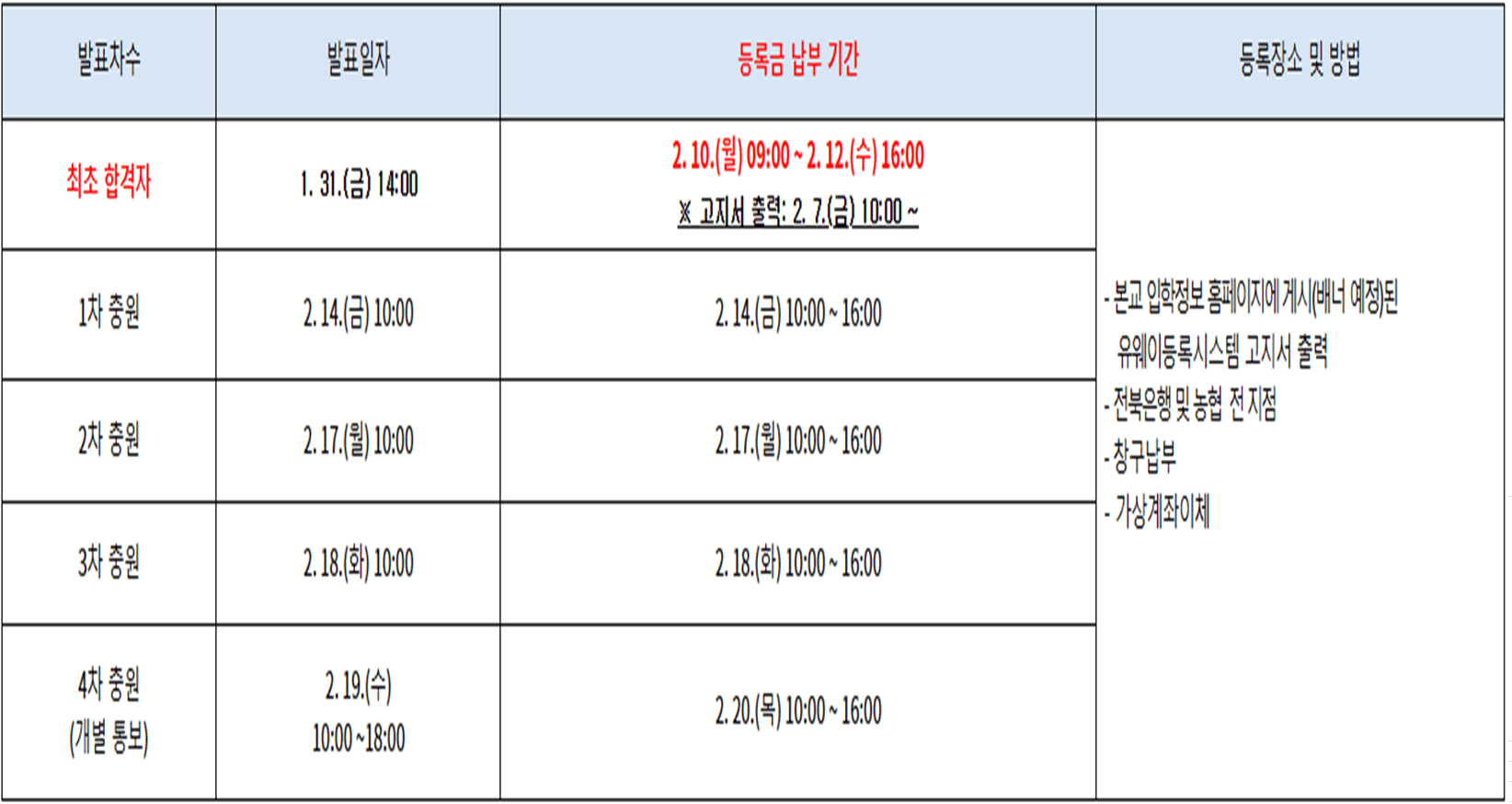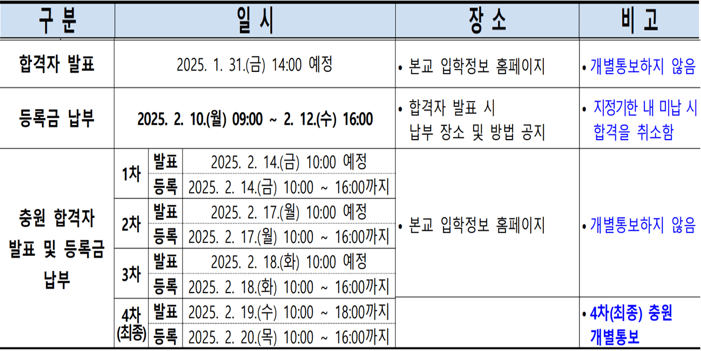 - 4차 충원(개별통보) : 2025. 2. 19.(수) 10:00 ~ 18:00