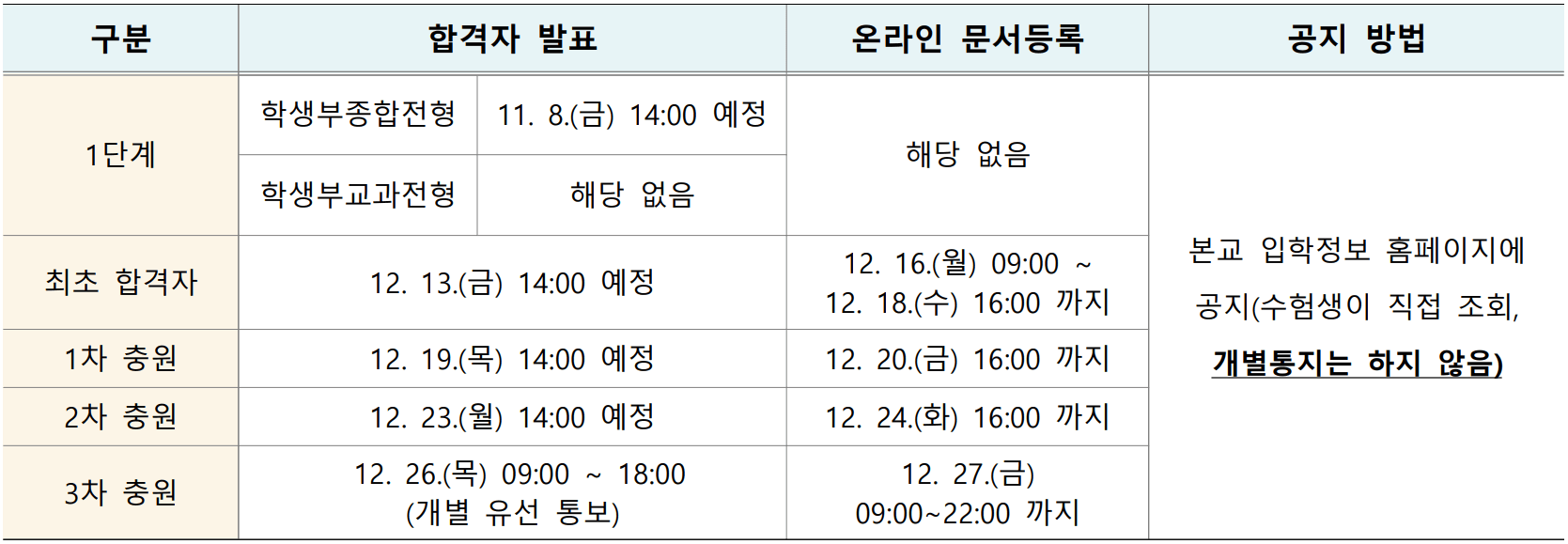 수시모집 합격자 발표일 및 충원(추가) 합격자 발표일 안내