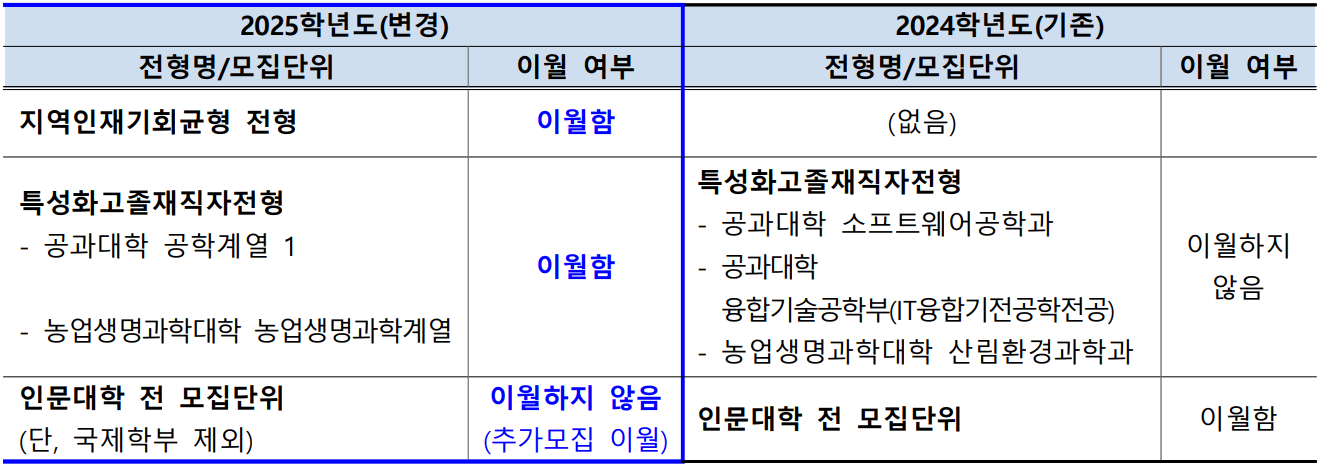 | 구분 | 2025학년도(변경) | 2024학년도(기존) |