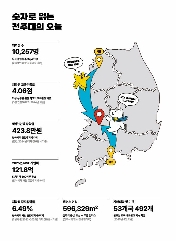 2026학년도 전주대학교 수시모집 요강이 공개되면서 많은 수험생과 학부모들이 학생부종합전형에 대한 관심을 보이고 있습니다. 특히 학생부종합 일반학생전형은 전공적합성과 인성, 학업역량을 고르게 평가하는 전형으로, 비교과 활동과 자기소개서 없이 서류평가 중심으로 진행됩니다. 전년도 합격자들의 내신 등급과 경쟁률을 면밀히 분석하면, 자신의 위치를 객관적으로 파악하고 합격 가능성을 높일 수 있습니다. 아래 2025학년도 전주대 수시모집 합격자 내신등급을 확인하셔서 지원 시 참고하시기 바랍니다.