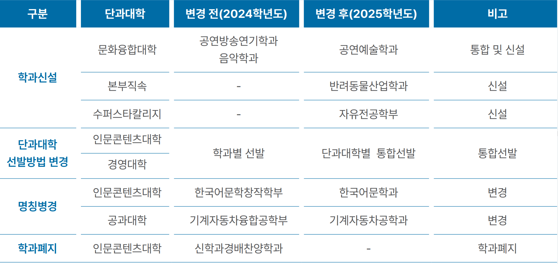 ☞ 2025학년도 학사구조 개편에 따른 변경사항 및 전형 신설(변경) 안내